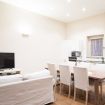 È un grande appartamento tra i 100 e 130 mq con due camere da letto e due bagni, alcuni con doccia altri con vasca idromassaggio, un soggiorno con angolo cottura. Si affaccia sulla corte interna. Ideale per due colleghi che cercano l’indipendenza di una camera con bagno, per chi ha una grande famiglia, per chi viaggia con gli amici. Possibilità di aggiungere fino a due letti singoli per ragazzi fino ai 17 anni.