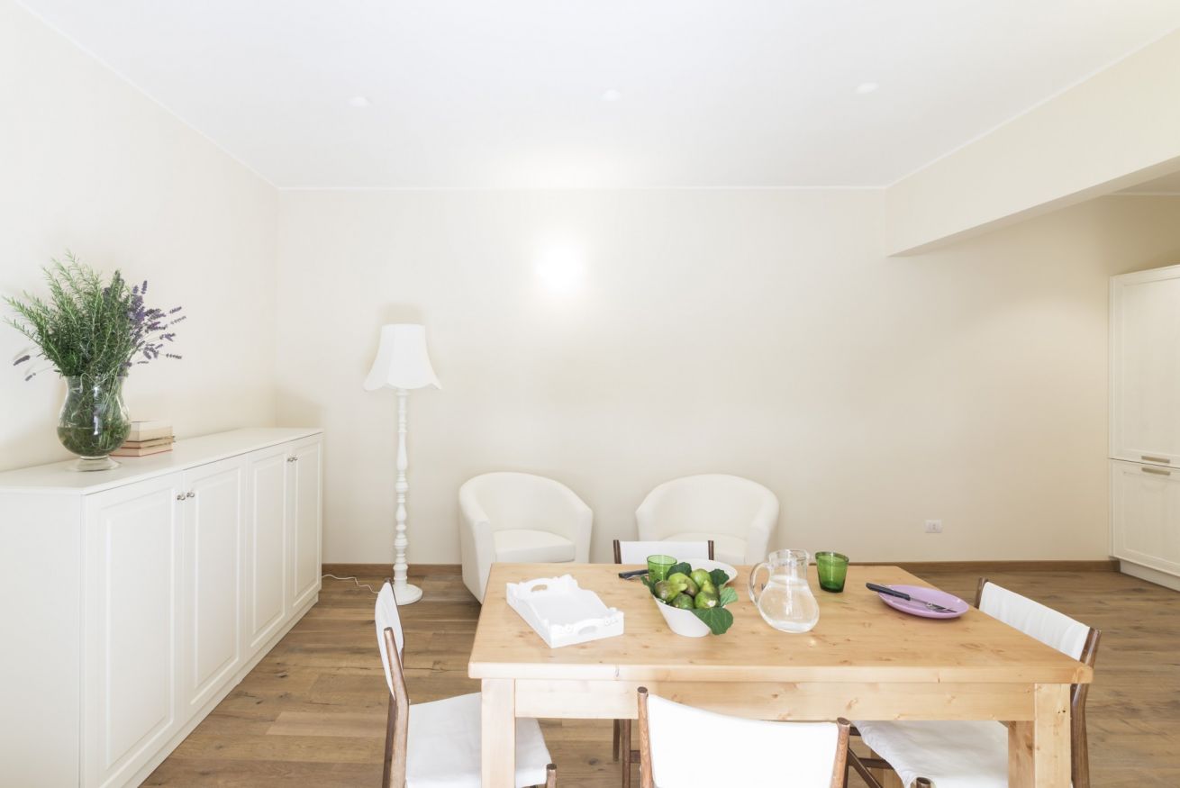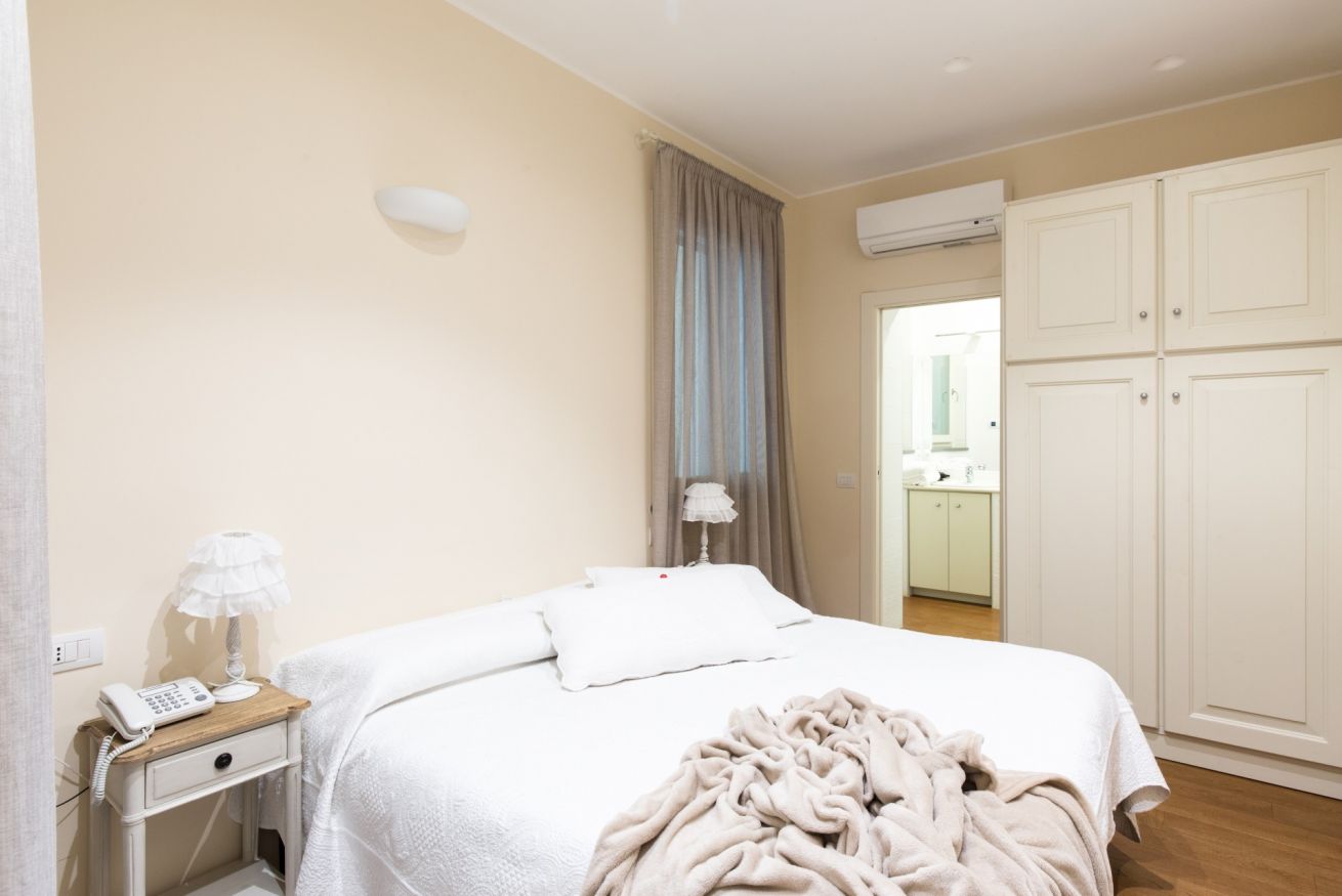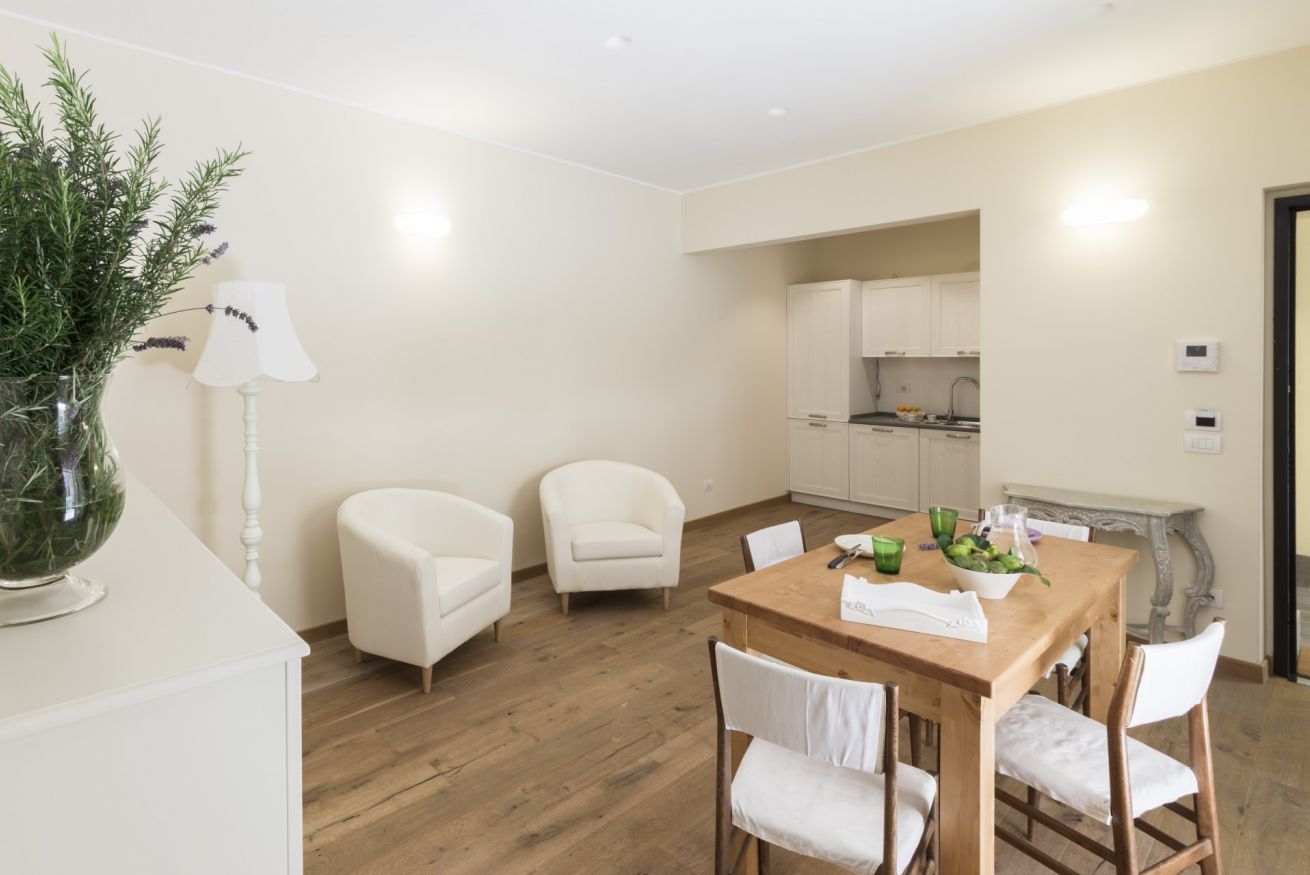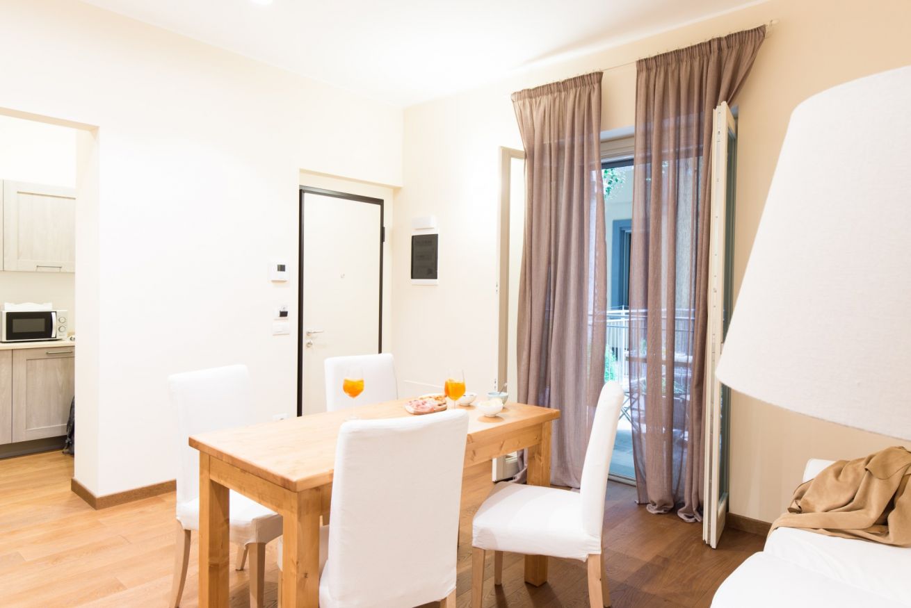 È un appartamento di 45 mq con una camera da letto matrimoniale, bagno con doccia, soggiorno e angolo cottura. Si affaccia sulla corte interna. È possibile aggiungere un letto singolo per ragazzi fino ai 17 anni.