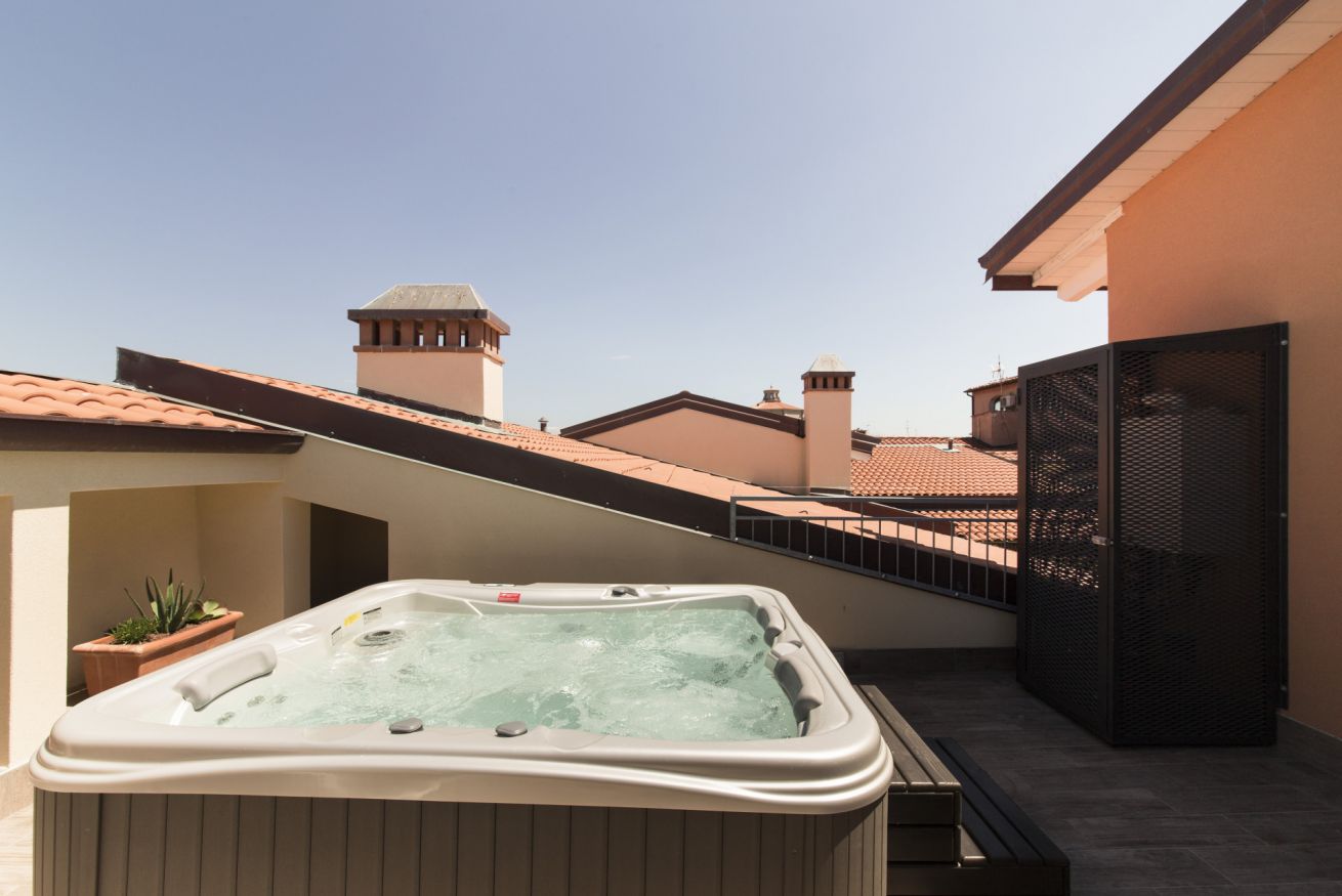 È un appartamento di 60 mq con due camere da letto matrimoniali, bagno con doccia, soggiorno con angolo cottura. Al quinto piano, ha una terrazza con vasca idromassaggio. È possibile aggiungere un letto singolo per ragazzi fino ai 17 anni.